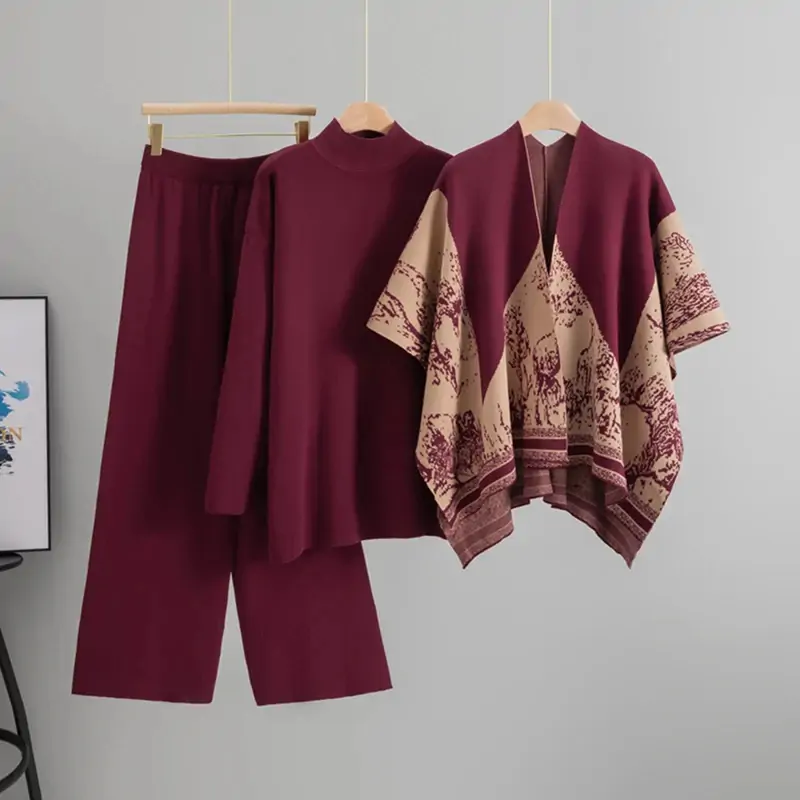 الصفحة الرئيسية اثاث طقم ملابس خارجية محبوك أنيق بلفافة كتف وبنطلون واسع